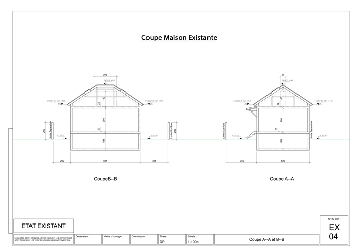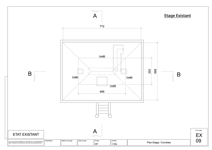 La maison existante avait une chambre à l'étage sous combles avec une très petite surface >1m80.