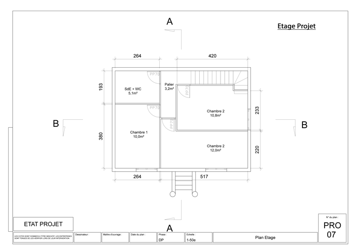 Le projet: Création d'un étage avec une salle d'eau et 3 chambres.